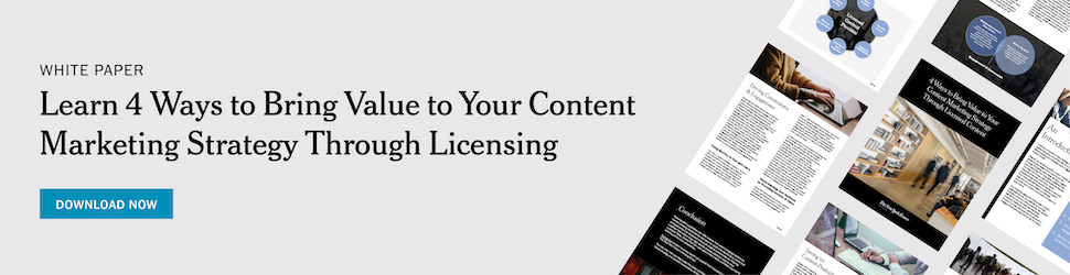 Utilize NYTLicensing for an easier way to incorporate content. With the many different copyright licensing solutions we offer, you’re sure to find content that can help you achieve your digital content marketing goals.