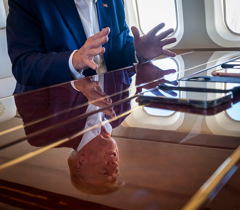 7. Former President Donald Trump speaks to reporters aboard his private plane in Columbia, S.C., on Jan. 28, 2023.