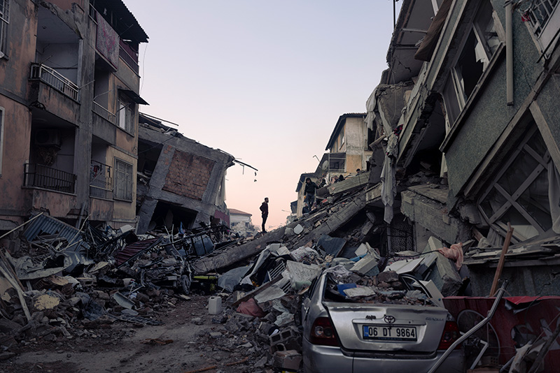 10. A man watches volunteers search for bodies in the old quarter of Antakya, Turkey, three days after the earthquake, on Thursday, Feb. 9, 2023.